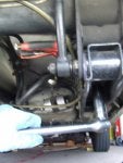and removed the lower nuts from where the shock goes through the trailing arm. Two nuts lock nut 1st (17mm), then 19mm nut.