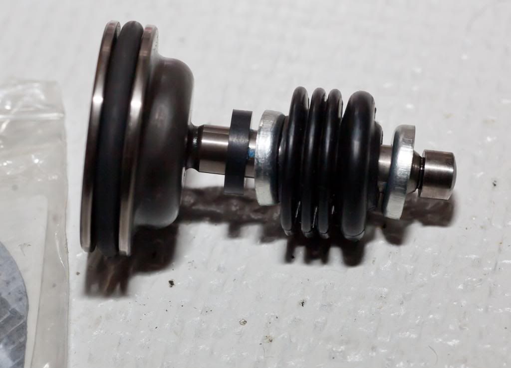 Est-ce le bon placement des bagues en métal et en caoutchouc sur la tige de piston ? Et je réalise que celles du bas vont à l'intérieur du soufflet, bien que je ne sois pas sûr de savoir pourquoi il y en a à l'intérieur du soufflet...